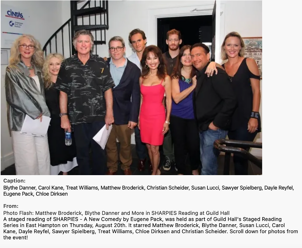 Blythe Danner, Carol Kane, Treat Williams, Matthew Broderick, Christian Schieder, Susan Lucci, Sawyer Spielberg, Dayle Rayfel, Eugene Pack, Chloë Dirksen